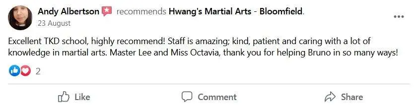 Find out why so many people in Bloomfield turn to Hwang's Martial Arts for their martial arts training. Parents just like you have discovered how to maximize their child's potential and accelerate their development! Request more information or get started today with our Exclusive Online Only Offer!