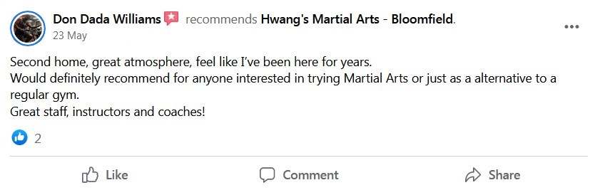 You will find that your instructors at Hwang’s Martial Arts Bloomfield are dedicated to helping you on your journey to Black Belt or whatever your personal goal may be.